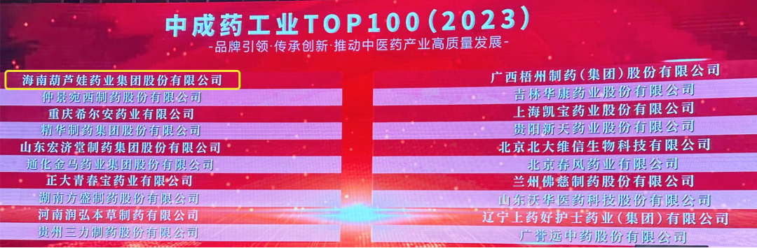 会上,还发布了“2023中成药工业TOP100”榜单,伟德国际1946药业集团荣耀上榜。